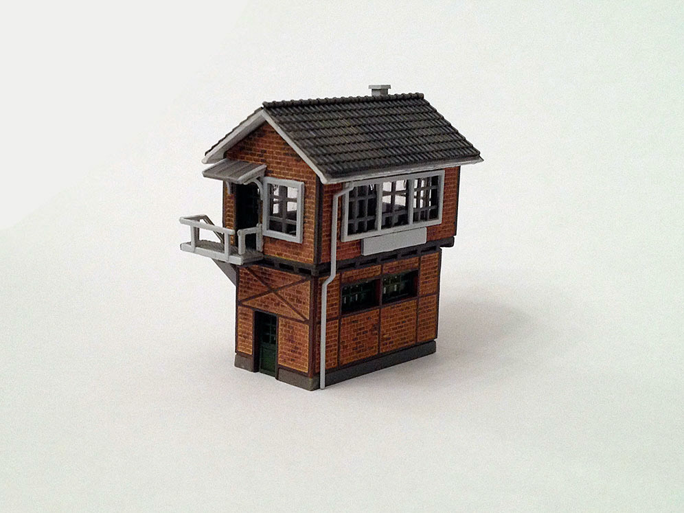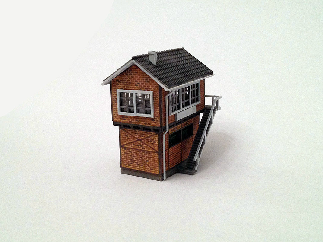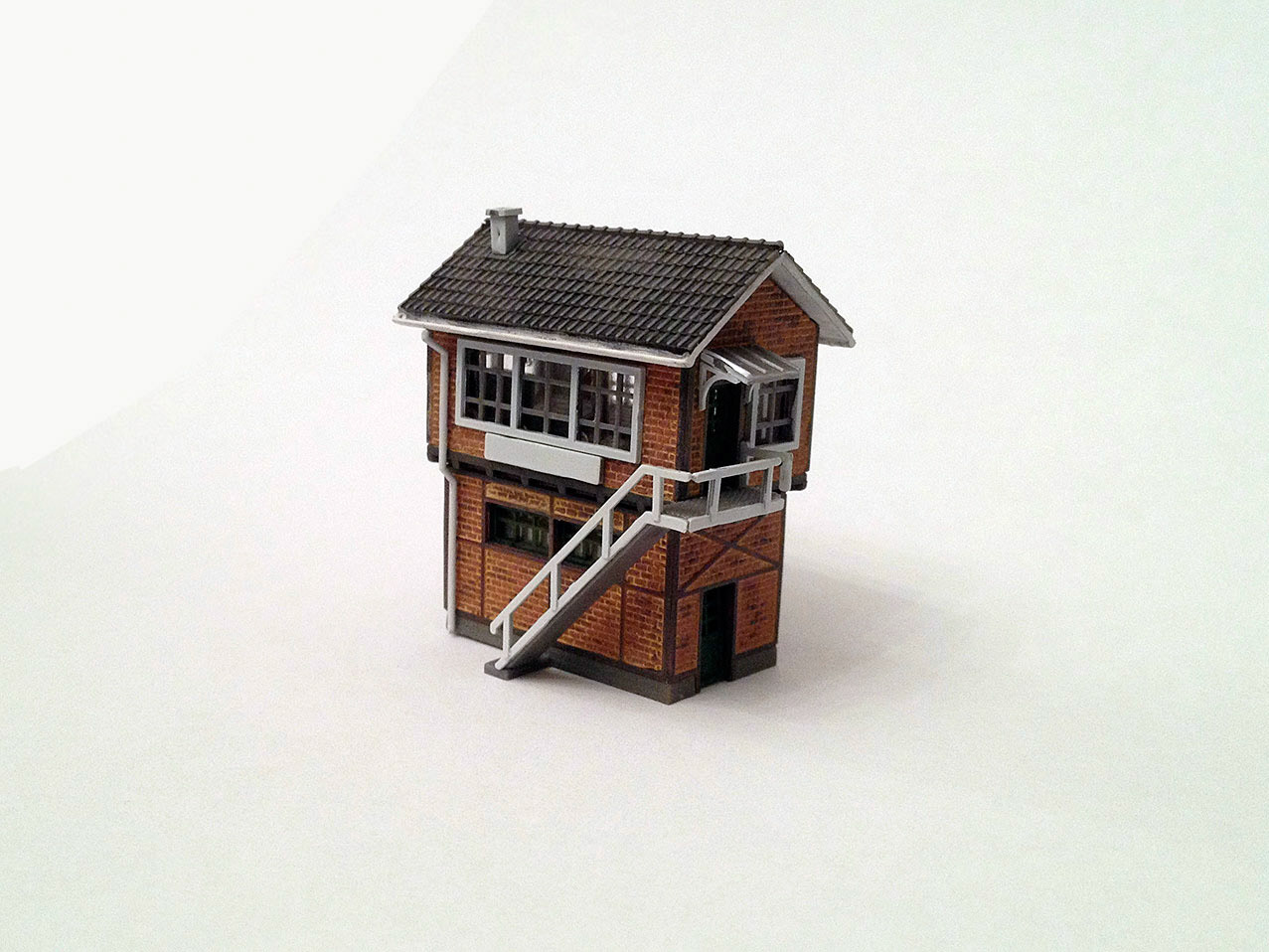 Commission. Z scale kit I've built and paint for a friend, featuring the weathering of the bricks, compared with the original plastic look of the last photo.